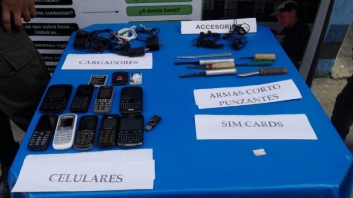 Entre estos se cuentan: 9 celulares 11 baterías para celular, 7 sim card, 4 cargadores, 2 manos libres, 1 memoria USB y 7 armas corto punzantes.