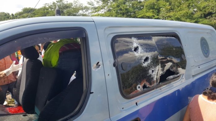 El caso se produjo en el sector de Humadea, kilómetro 30 y aunque no ha sido precisado, las versiones iniciales indican que el atentado al parecer iba dirigido contra el recluso, que resultó herido. Dos guardias también fueron alcanzados por los proyectiles.