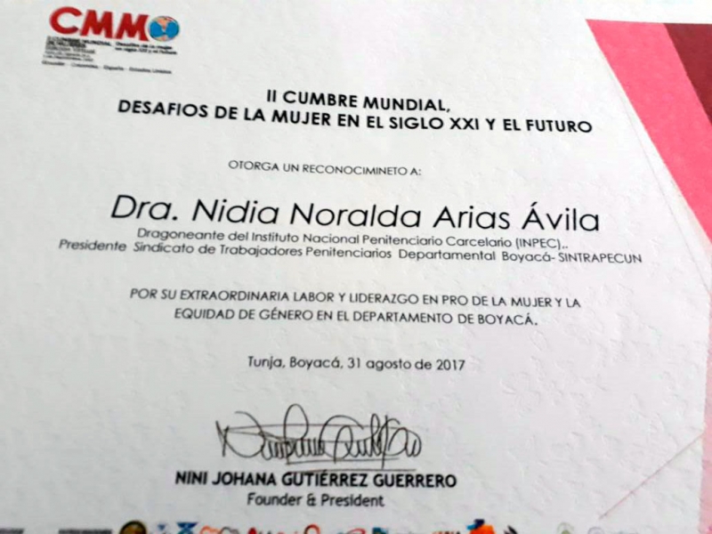 Con la participación de FECOSPEC, representada en nuestra dirigente, compañera Nidia Arias, Presidente de SINTRAPECUN – BOYACÁ, se llevó a cabo la Segunda Cumbre Mundial de Mujeres. Desafìos de la Mujer en el siglo XXI y el futuro.