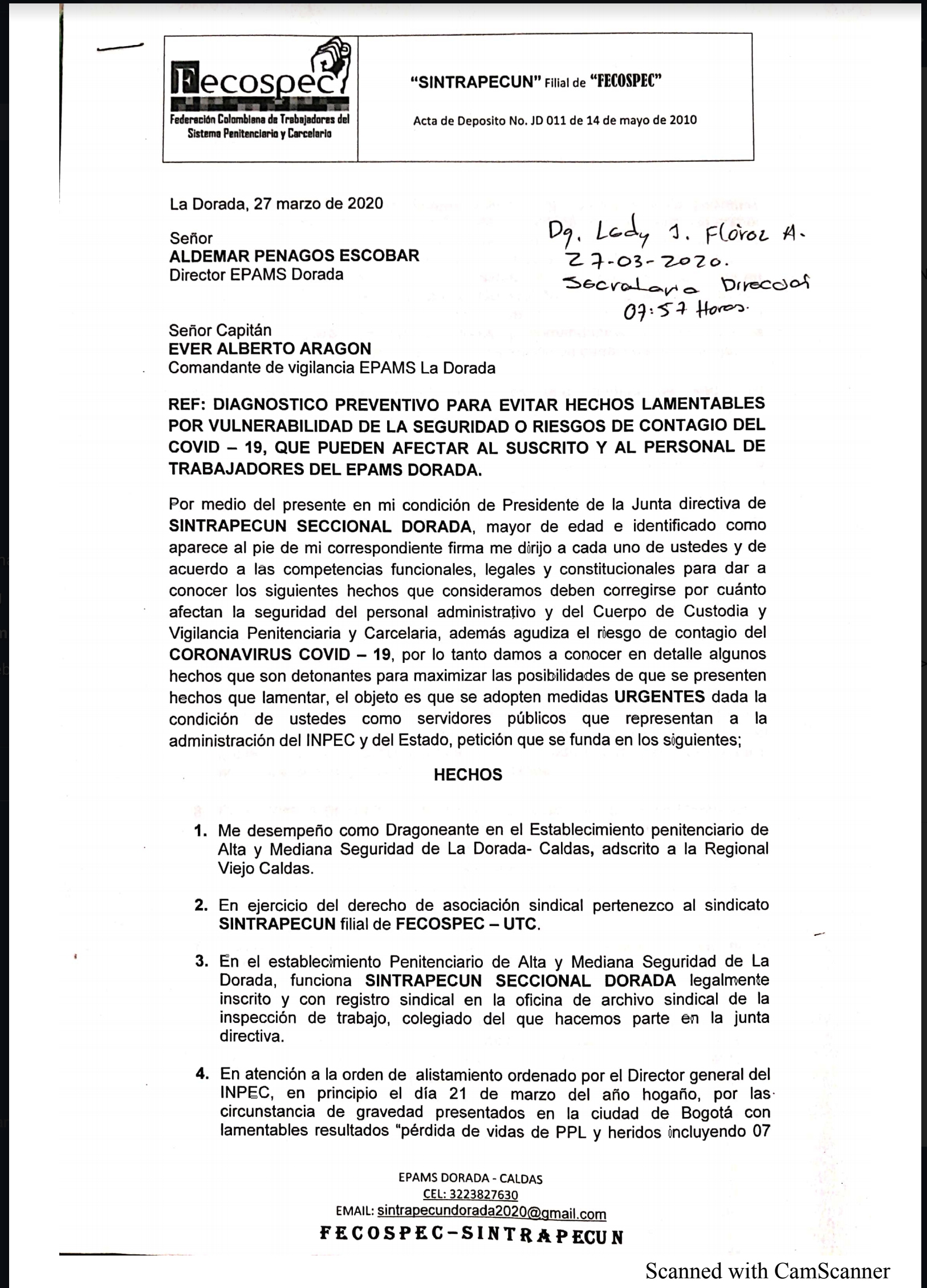 InformaciónDocumentos Diagnóstico preventivo ante el riesgo de contagio por COVID -19 EPAMS Dorada Por Comunicaciones Fecospec - abril 2, 2020 0 569 FacebookTwitterPinterestWhatsApp Presidente de la Junta Directiva de SINTRAPECUN da a conocer algunos hechos importantes a tener en cuenta, con el objeto de que se adopten medidas urgentes en el establecimiento.