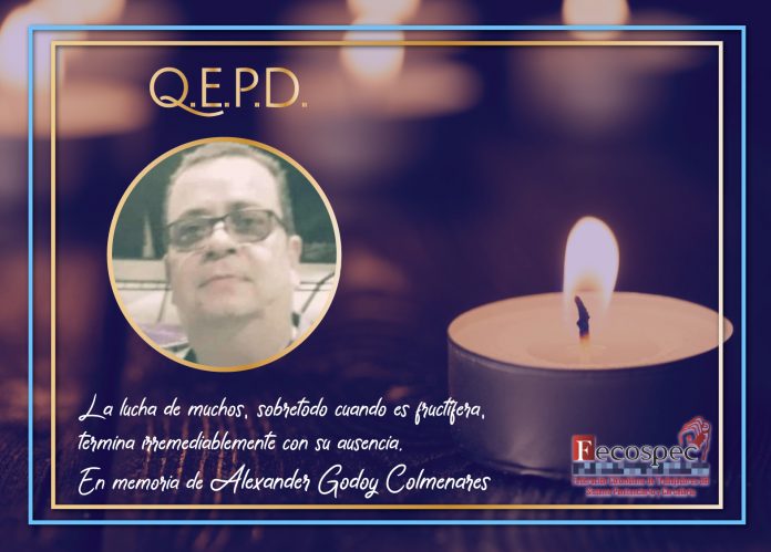 FECOSPEC, SINTRAPECUN NACIONAL y SINTRAPECUN Santander, lamentan una nueva partida, otro compañero que nos arrebata el COVID-19 sin que nada podamos hacer, es muy triste ver partir a nuestros amigos, que hacen su mejor esfuerzo por continuar a pesar de la adversidad, que luchan día a día y que han dejado su impronta en pro de la protección de los derechos de los trabajadores.
