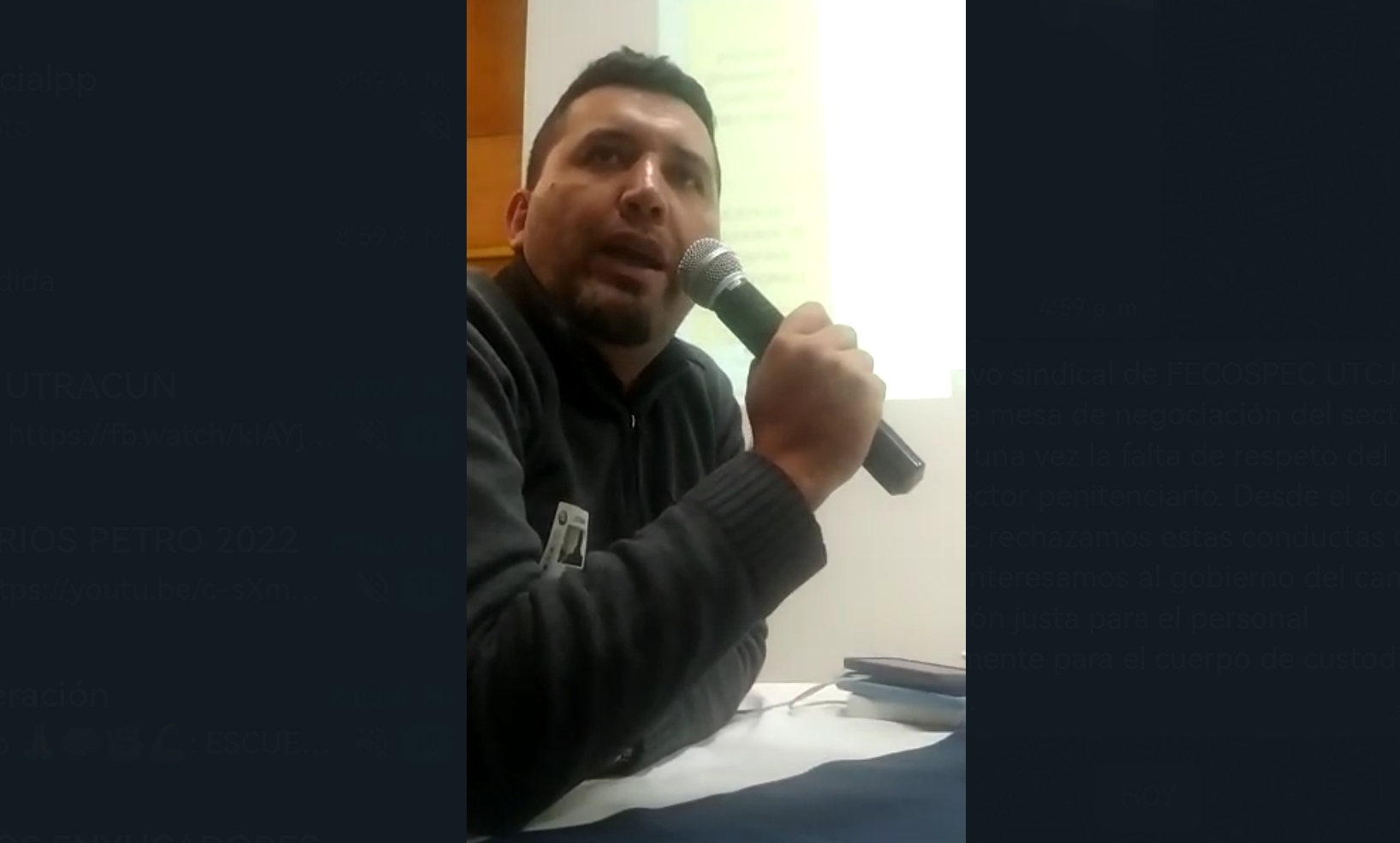 Intervención del directivo sindical de FECOSPEC UTCJohn Mario Murcia Yara, en la mesa de negociación del sector justicia demostrándole una vez la falta de respeto del gobierno nacional al sector penitenciario. Desde el comité ejecutivo de FECOSPEC rechazamos estas conductas que muestran que poco le interesamos al gobierno del cambio. Reclamamos una pensión justa para el personal administrativo y obviamente para el cuerpo de custodia y vigilancia penitenciaria. (ver video abajo)
